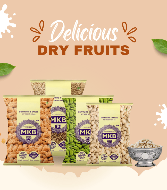 MKB Foods is a trusted name in premium-quality dry fruits, spices, and traditional Indian delights. Based in India, we specialize in bringing the finest selection of dry fruits, powdered spices, whole spices, gunder (edible gum), mouth fresheners, and mukhwas right to your doorstep.